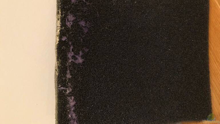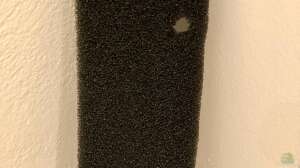 Doch zurück zum Bau eines Filters aus besagten Matten und Lufthebern??? Filtermatten werden in verschiedene Poren-Stärken unterteilt, die von grob bis fein gehen. Diese werden in PPI (pores per inch) angegeben. Dabei sind PPI 30 als ???fein??? und PPI 10 als ???grob??? zu sehen. Mit PPI 20 hat man eine mittel-grobe Filtermatte, die ich zur Abtrennung der Becken in Verwendung hatte. Natürlich kann man die Filtermatten in verschiedenen Grö??en und Durchmessern kaufen.