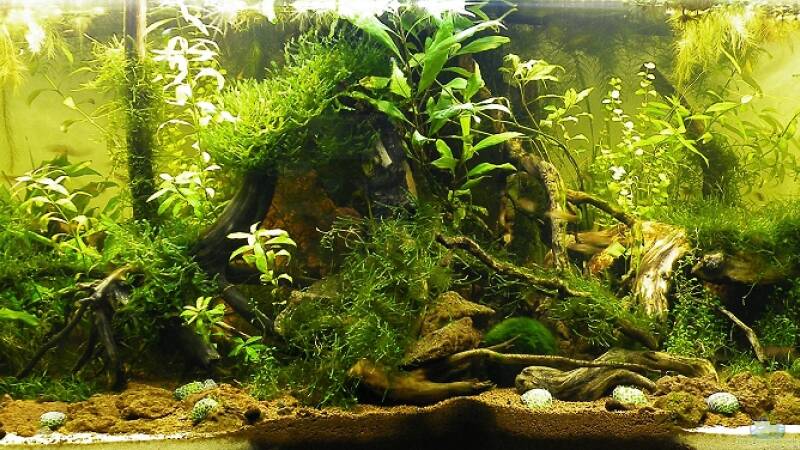 Genial! Beim Neubestücken der Lavasteine mit Riccia sind mal nahezu alle Garnelen heraus gekommen, um die neuen Steine zu beackern.