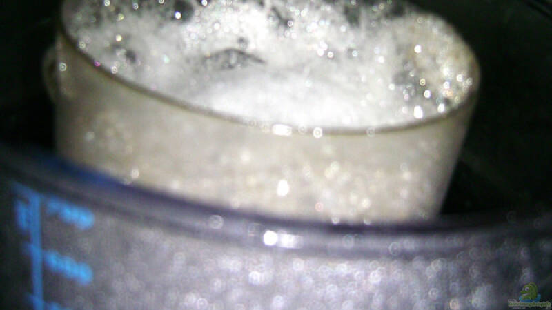 Das mit dem Schaum ist immer so eine Sache, zum einen darf er nicht zu wässrig und zum anderen nicht zu trocken sein. Beides führt zu einer verminderten Abschäumung. Zwar ist der 9410 so konstruiert, dass es kaum notwendig ist Einstellungen vor zu nehmen, trotzdem ist darauf zu achten, dass das Abwasser nicht zu hell oder gar zu dunkel ist. Ein satter Braunton ist ideal! Mittels eines Rohres mit aufgesetzten Postfilter, der in der Höhe verstellt werden kann, wird die Konistenz des Schaumes leicht nach reguliert.