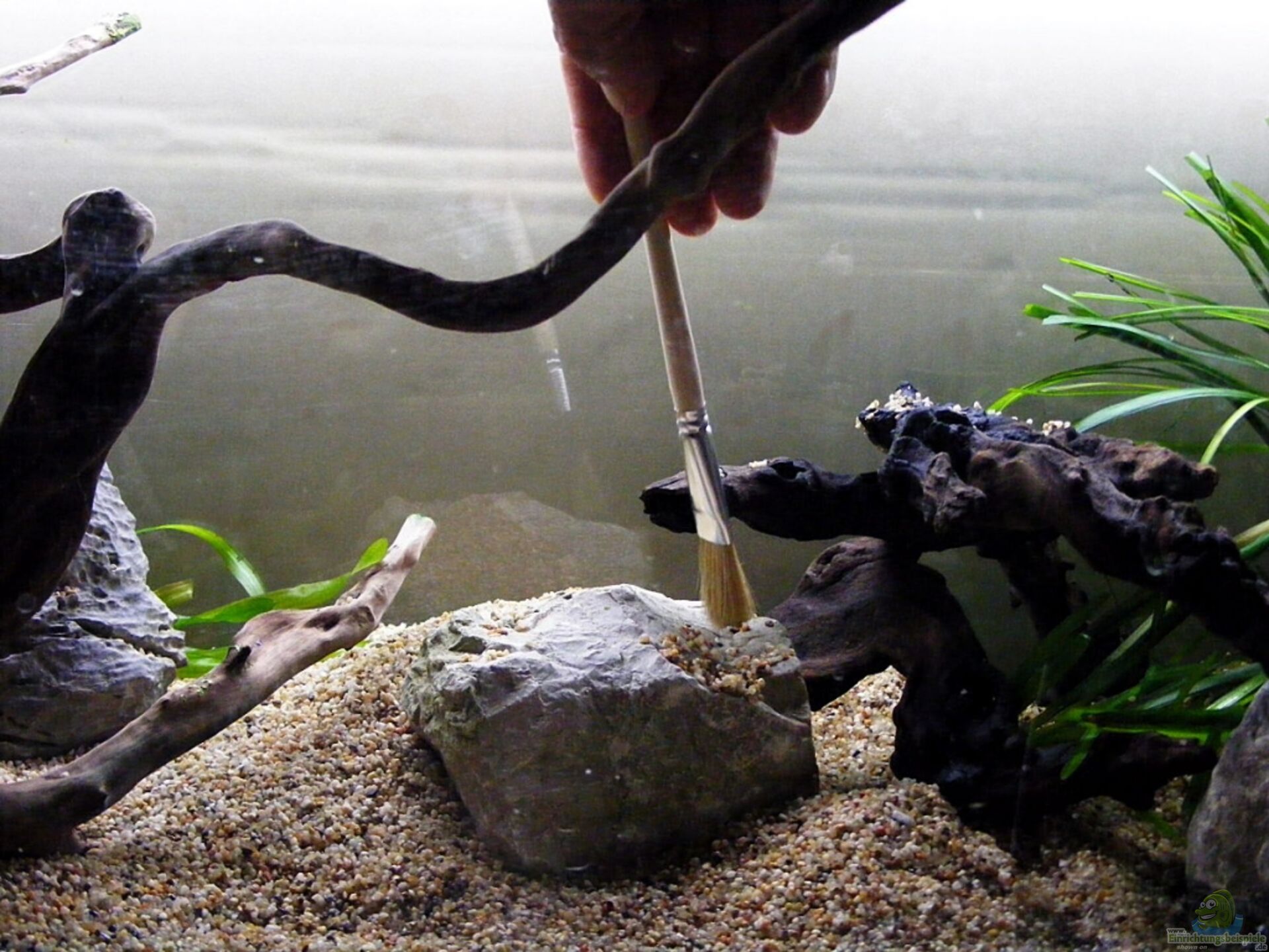 Es werden Steine Wurzeln und alle anderen Dekoelemente gesetzt.