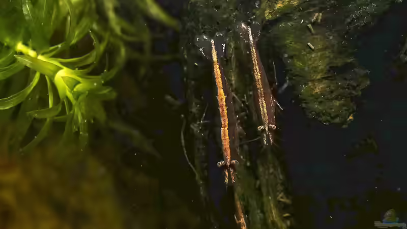 Einrichtung: Viele Verstecke aus Wurzeln, Steinen und Höhlen sorgen für Sicherheit. Wichtig ist auch, dass es erhöhte Plätze im Bereich der Strömung gibt – z. B. Äste oder Steine nahe des Filterauslaufs. Dort positionieren sich die Garnelen zum Filtern.