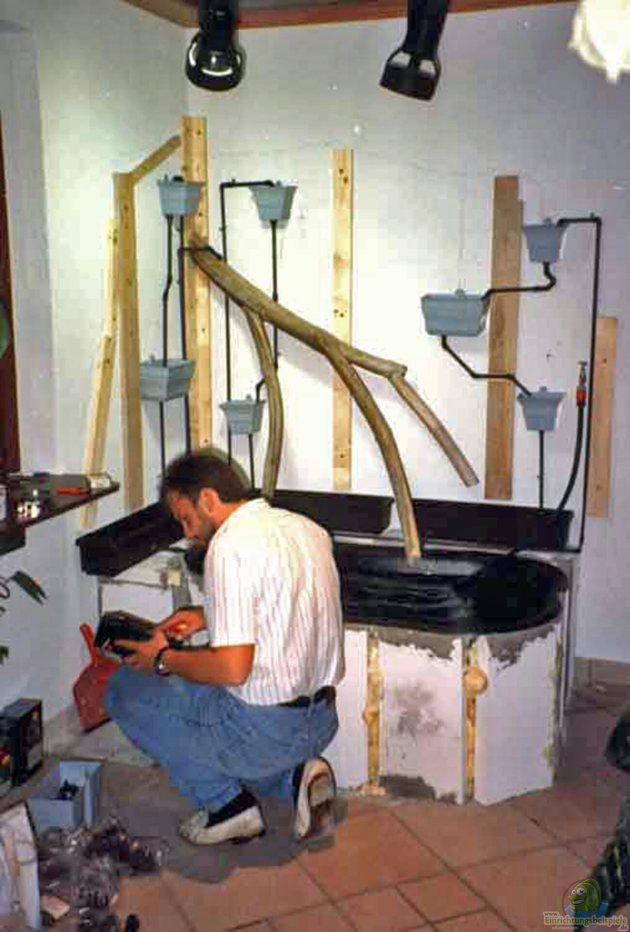 Eins Tages kam ein Kunde in mein Geschäft und wollte einen Gartenteich im Wohnraum, besser gesagt in seine Eingang-Diele, da diese sehr gro?? war und eine leere Ecke hatte.