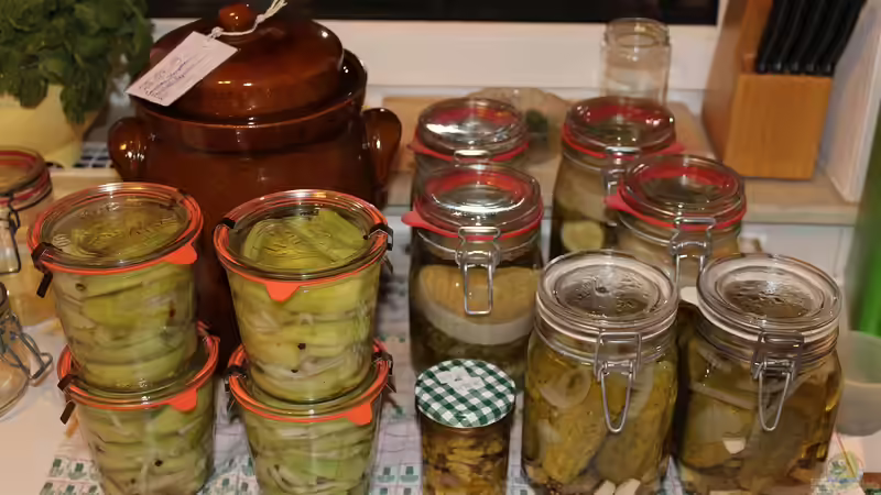 Einkochen ist eine der ältesten und zuverlässigsten Methoden zur Konservierung. Dabei wird Obst oder Gemüse in Gläser gefüllt und in heißem Wasser oder im Backofen erhitzt, um Keime abzutöten.