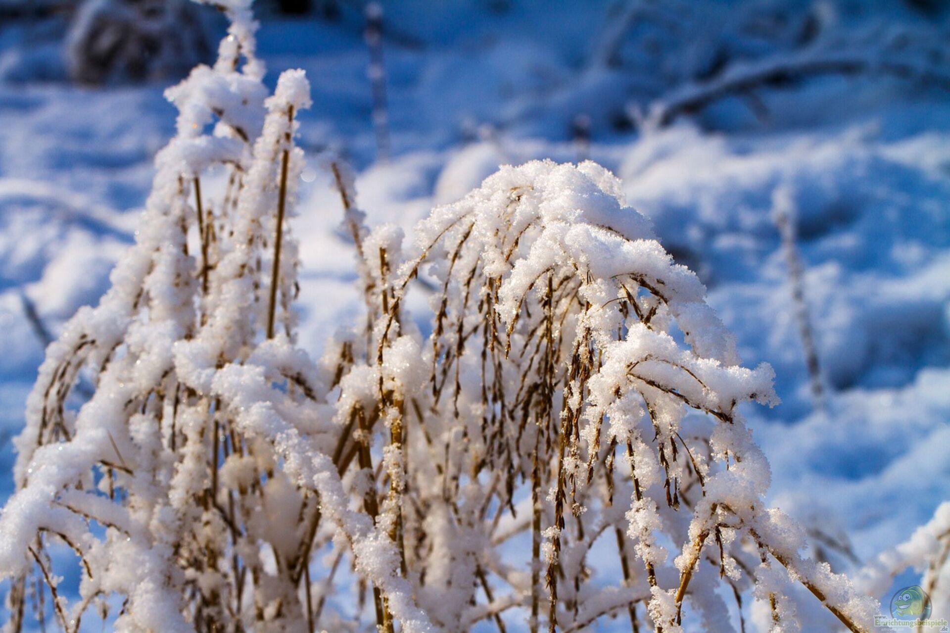 Viele Gräserarten wirken durch ihre Standfestigkeit und Struktur wie eine natürliche winterliche Skulptur. Besonders hochwüchsige Arten wie Chinaschilf (Miscanthus) oder Lampenputzergras (Pennisetum alopecuroides) bieten mit Schneekappen einen besonders reizvollen Anblick.
