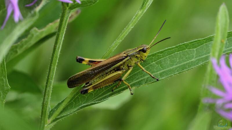 - Aussehen und Verhalten: Diese Art hat eine grüne bis bräunliche Färbung, oft mit feinen Streifen am Hinterleib. Sie zeigt einen sehr charakteristischen Sprungstil und ist besonders aktiv in der Dämmerung.