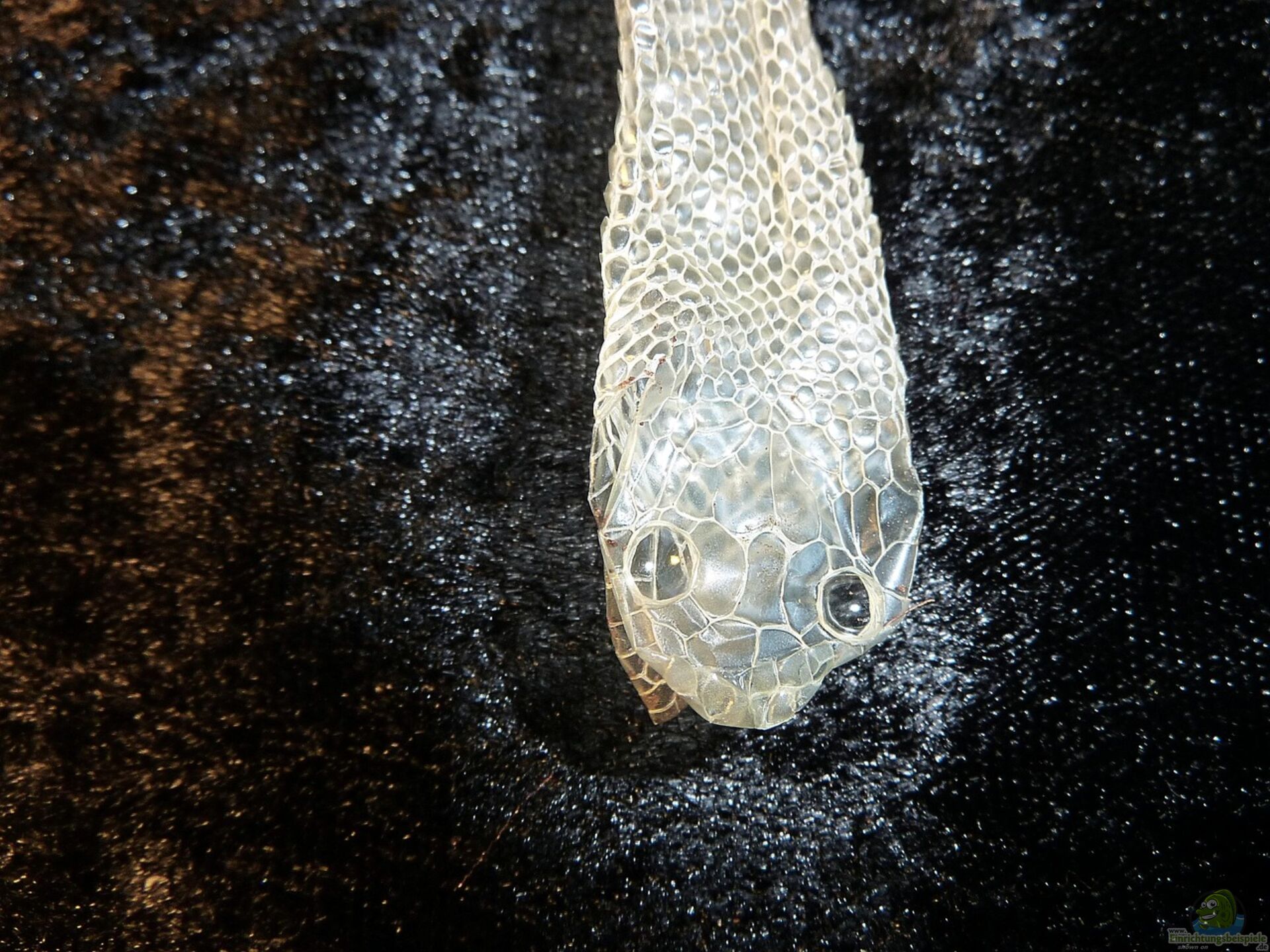Lösung: Die Schlange in lauwarmem Wasser baden (5–10 Minuten) oder mit einem feuchten Tuch vorsichtig abreiben.