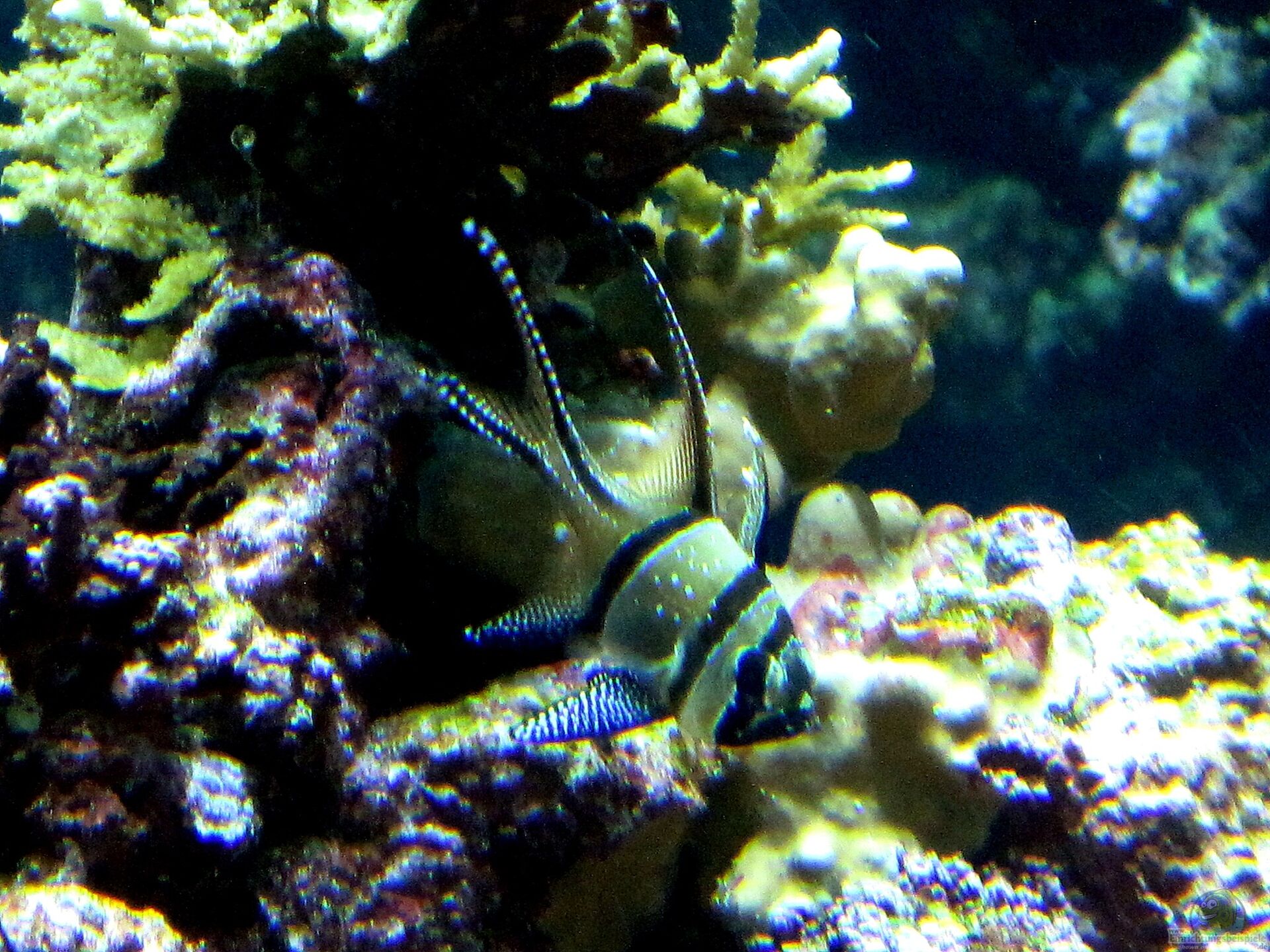 Diese Art ist ebenfalls relativ kleinbleibend und sehr friedlich. Sie bevorzugt ruhige Bereiche im Aquarium und hält sich gerne in der Nähe von Höhlen, Korallen oder Überhängen auf.
