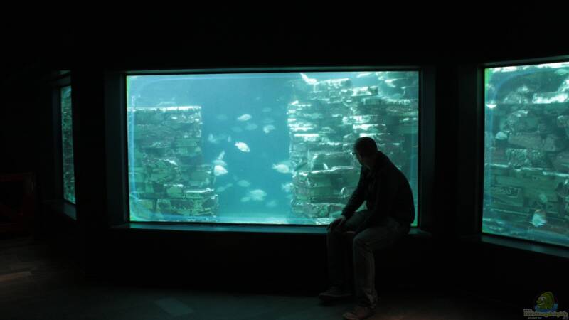 Weiter geht es an einem langegezogenen Meerwasserbecken mit Riffhaien und Rochen vorbei(B) und schliesslich zu einer Vielzahl von weiteren Becken, von denen viele auch auf Biotope oder Kontinente abgestimmt sind (B).