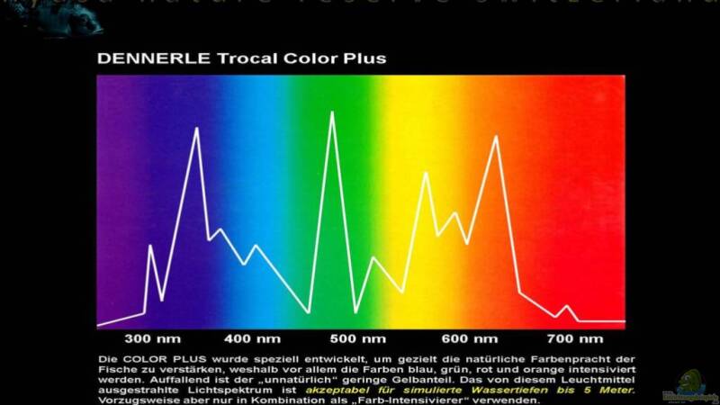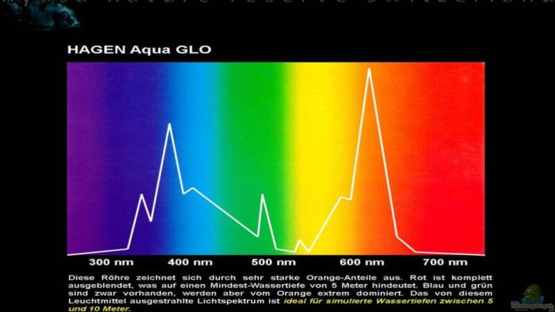 Bei der Planung der Aquarien-Beleuchtung ist hier also zu berücksichtigen, dass einerseits weniger Licht benötigt wird (dunkel) und, dass die zu wählenden Leuchtmittel keine roten und orangen Farbanteile enthalten.