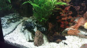 Die Wasserwerte sind mittlerweile recht stabil und die Fische, die seit kurzer Zeit im Becken schwimmen zeigen schöne Farben. Doch der Mulm ist noch zu sehen und würde die Wasserqualität auf Dauer zu sehr belasten.