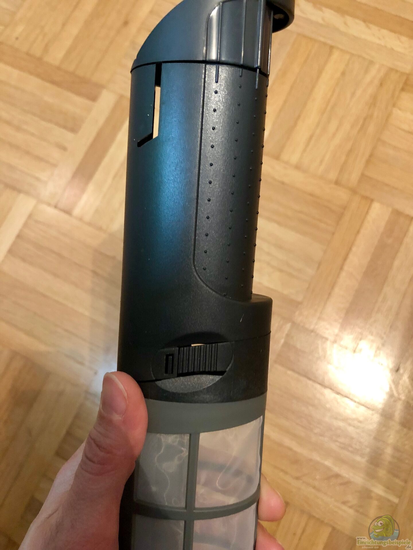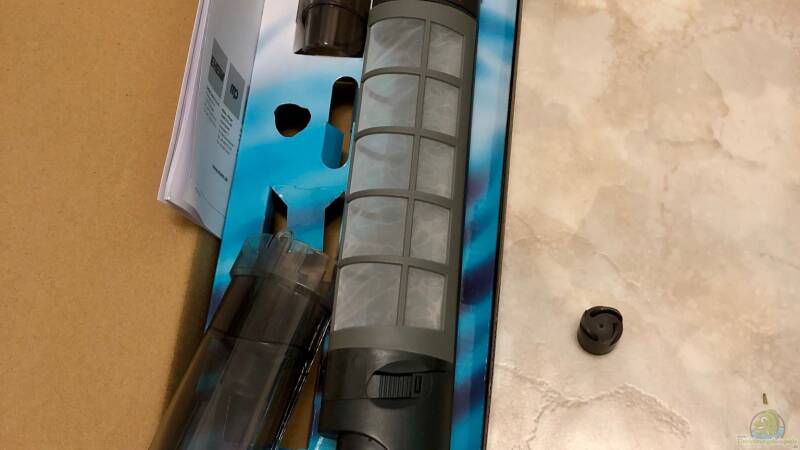 Freudig packte ich es aus und setzte es zusammen. Gleich ging ich mit dem Gerät zum ersten Aquarium und probierte es aus. Doch leider hatte ich etwas vergessen! Es gibt ein kleines, hohles Magnet-Teil, das ich verga?? unten anzubringen.