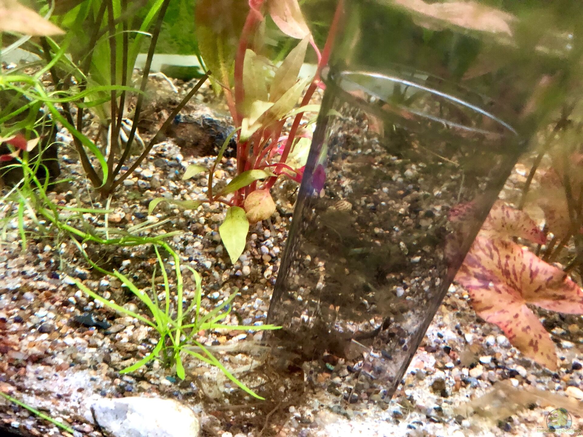 Das nächste Aquarium, das ich in Arbeit hatte, war ein Becken, in dem ich den pH-Wert von basisch auf sauer geändert hatte und die Pflanzen nahmen es mir etwas übel. So hatte sich einiges an Mulm im Kies angesammelt. Auch hier haben sich Algen an der Frontscheibe breit gemacht.