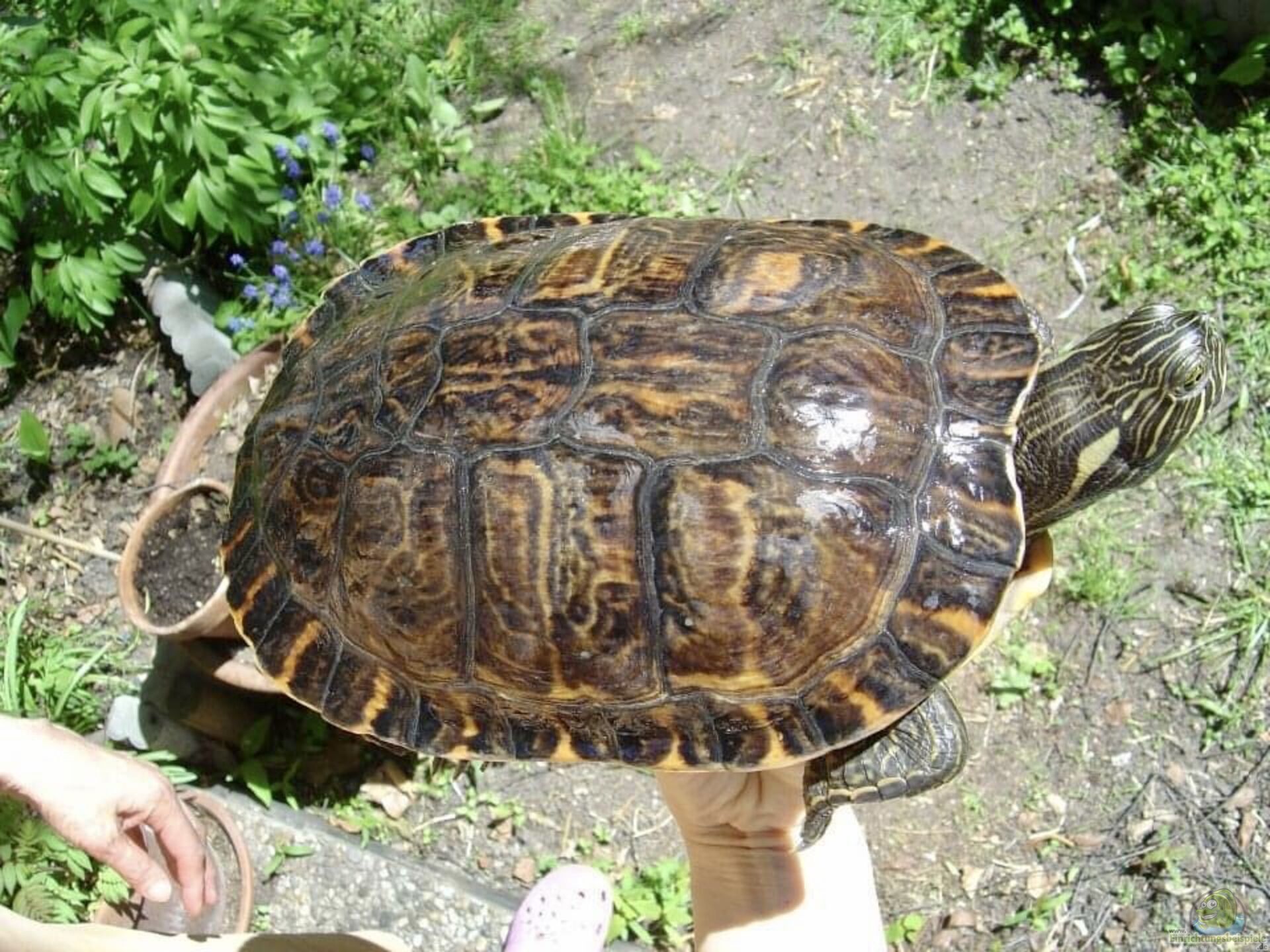 Morla ist eine Hieroglyphen Schmuckschildkröte Pseudemys concinna und kam 1988 zur Welt. Sie ist also genau zehn Jahre jünger als ich. Meine beiden guten Freunde, mit denen ich aufgewachsen bin haben das Tier von ihrem Vater erhalten. Er kannte sich gut mit Tieren aus und war begeisterter Aquarianer. In dieser Zeit hatten wir Kinder alle viele Tiere zuhause, züchteten Meerschweinchen, Kaninchen und Mäuse, waren viel im Garten, in der Natur allgemein unterwegs, gingen auch mal angeln, fuhren mit dem Schlauchboot im Gie??en bis zum Inn, an dem wir Grillfeiern veranstalteten - immer ohne Erwachsene, doch wir waren im Umgang mit Feuer sehr geübt und es war somit kein Problem. Heute würde es wohl anders aussehen??? Es gab Radtouren, Fu??ballspiele, wir kletterten auf Bäume und Dächer, fuhren mit unseren Meerschweinchen und Kaninchen auch mal im Kinderwagen durch die Stadt, sammelten Geld für den Tierschutzverein - wir haben es auch wirklich ganz stolz abgegeben, leider schätzte man unseren Einsatz nicht und wir waren deshalb sehr enttäuscht und sammelten darum das nächste Mal lieber für zwei Proviant-Schlauchboote, für die Bootfahrten im Gie??en, der zum Inn floss...