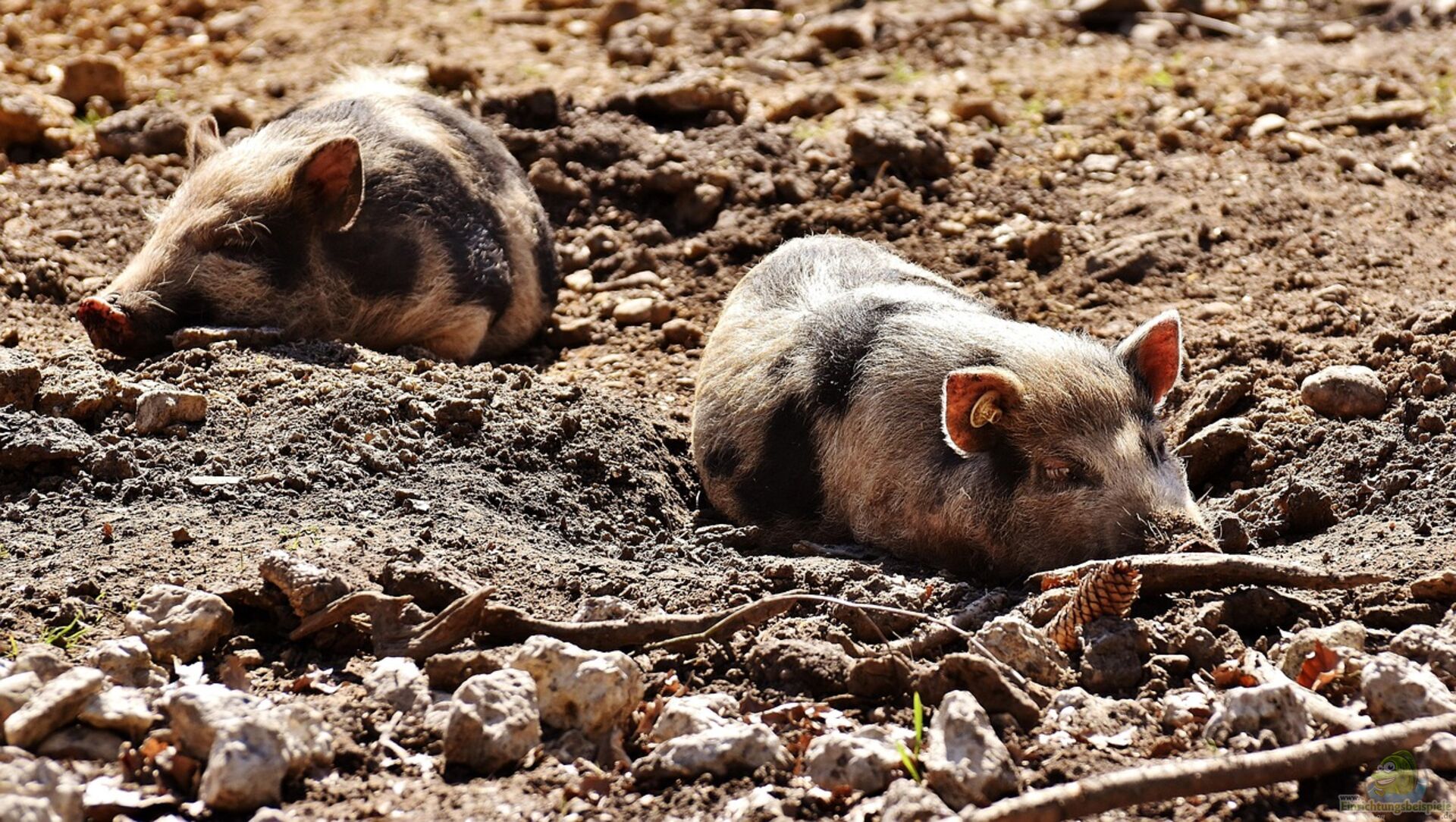 Zusätzlich braucht der Auslauf eine Matschzone oder Suhle. Schweine regulieren ihre Körpertemperatur über Schlamm, da sie kaum schwitzen können.