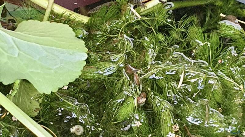 Vielleicht wartet er auch auf Futter, denn die Medaka werden alle zwei Tage mit Flockenfutter und Staubfutter gefüttert. Natürliche Nahrung, wie Wasserinsekten, Mückenlarven, Schnecken und anderes scheint auch genügend in dem Teich zu sein??? Au??erdem befindet sich ein gro??er Komposthaufen nur drei Meter neben dem Teich. Dies sollte nicht au??er Acht gelassen werden, denn hier hat der Molch wohl den optimalen Lebensraum gefunden. Es gibt auch unzählige Weinbergschnecken in dem Garten, die andernorts leider nur mehr selten anzutreffen sind???