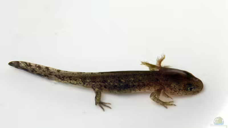 - Teichmolch: Ungezackter Kamm, orange Schwimmhäute.