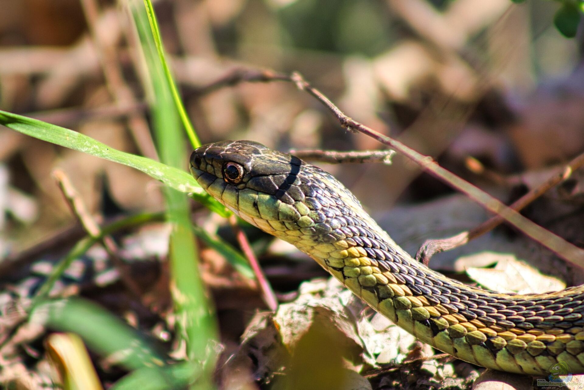 Die Strumpfbandnatter ist eine weitere beliebte Terrarium-Schlange. Sie ist kleiner als die Kornnatter und erreicht meist eine Länge von 60 bis 120 Zentimetern. Strumpfbandnattern stammen ebenfalls aus Nordamerika und sind bekannt für ihre markanten Streifen und lebhaften Farben. Sie sind sehr aktiv und benötigen ein gut strukturiertes Terrarium mit Klettermöglichkeiten. Strumpfbandnattern gelten als relativ anspruchslos, müssen jedoch regelmäßig gefüttert werden und profitieren von einer abwechslungsreichen Ernährung.