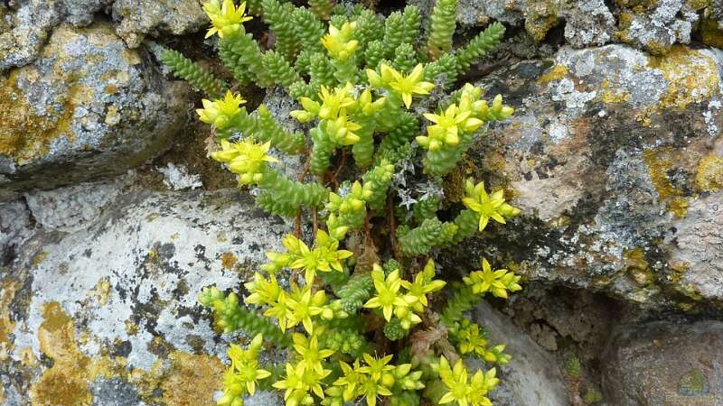 Die Fugen zwischen den Steinen bieten Platz für Gartenpflanzen. Füllen Sie die Fugen mit humusreichem Substrat oder Lehmerde und setzen Sie anschließend Pflanzen ein, die Trockenheit gut vertragen. Besonders geeignet sind Mauerpfeffer, Thymian, Hauswurz und Steingartenpflanzen. Die Pflanzenwurzeln helfen, die Mauer zu stabilisieren und bieten Insekten Lebensraum.