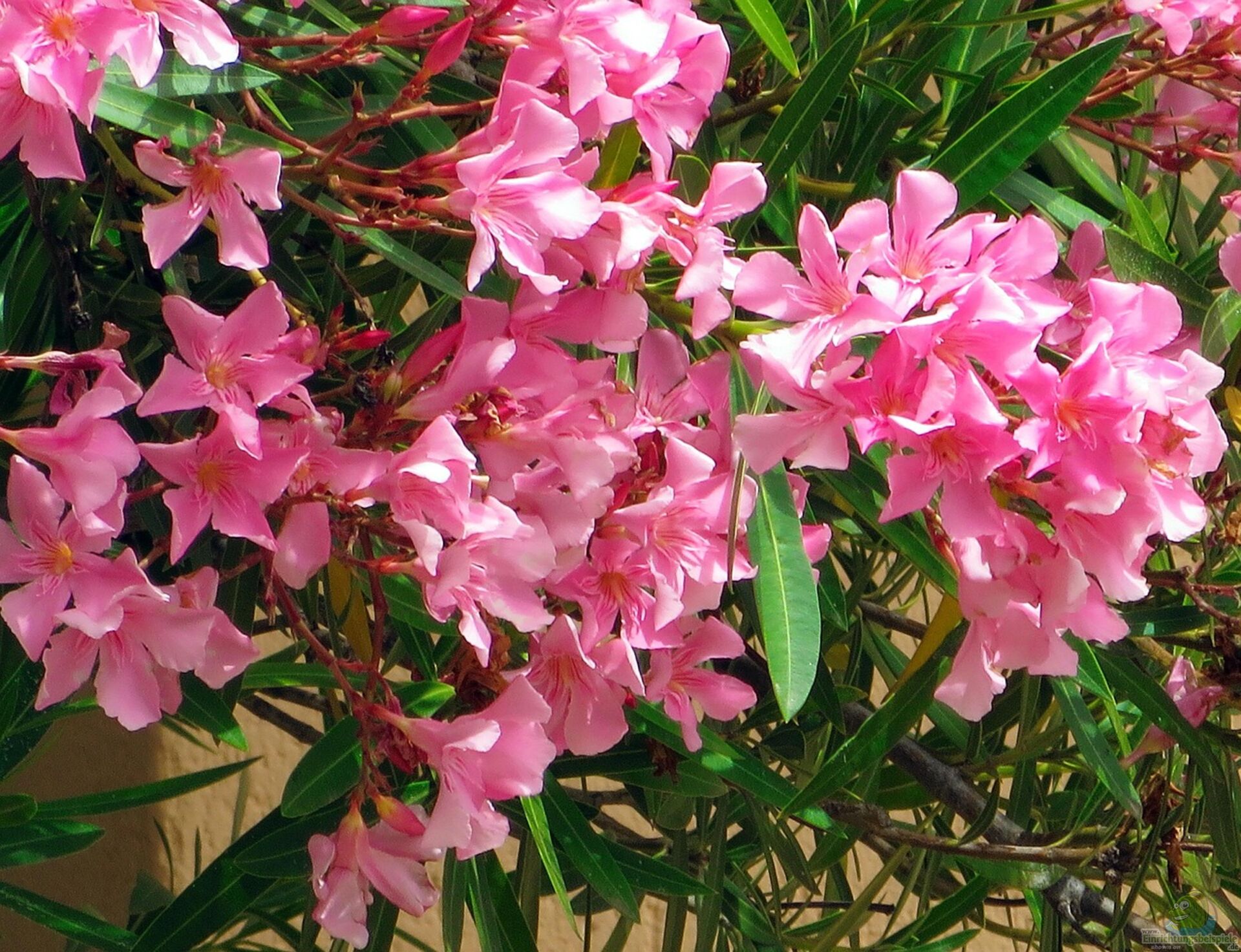 - Wasserbedarf: Im Gegensatz zu vielen anderen mediterranen Kübelpflanzen verträgt Oleander keine längere Trockenheit. Selbst im Winter darf er nicht vollständig austrocknen.