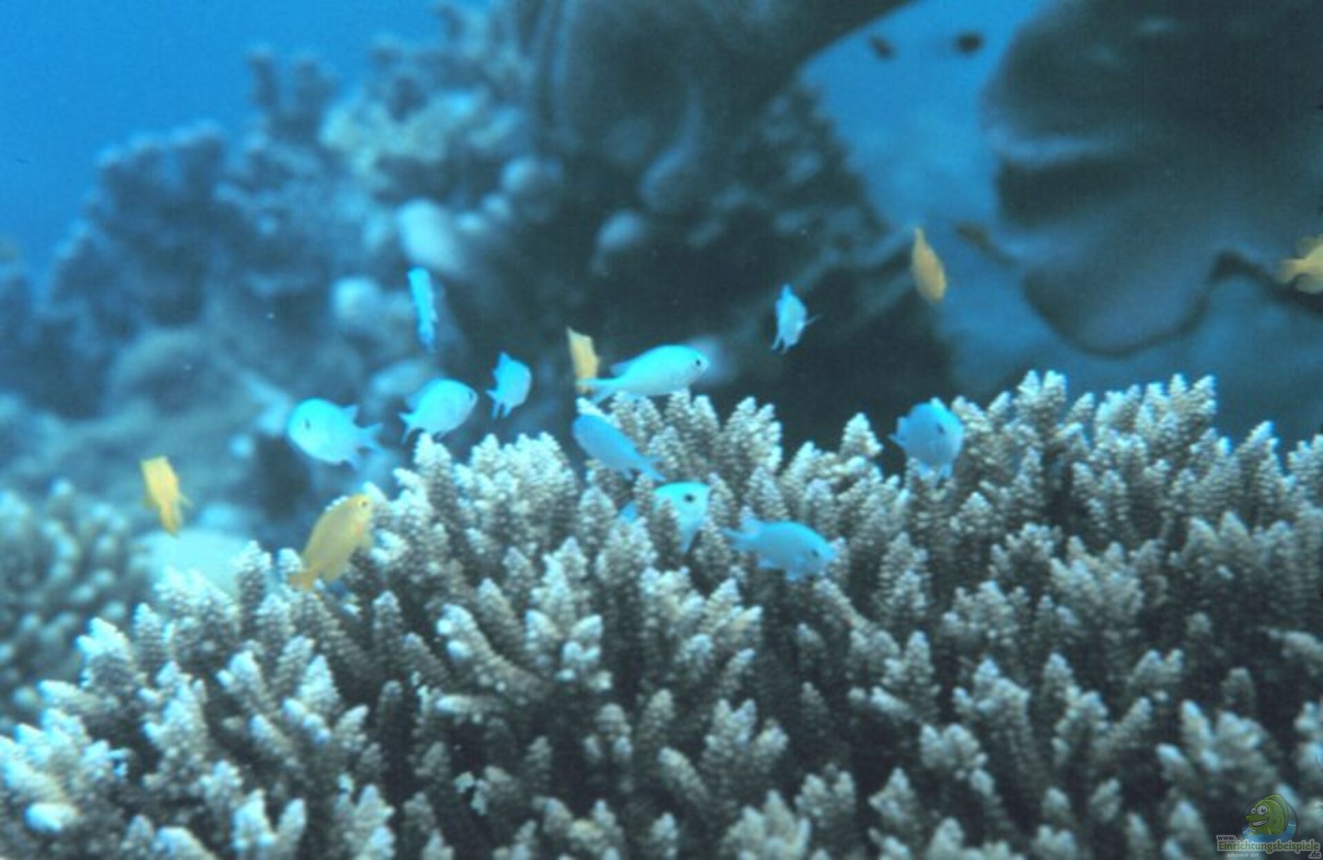 Die Kombination mit anderen Fischarten sollte vorsichtig erfolgen. Riffbarsche können aggressiv gegenüber kleineren oder untergeordneten Fischen sein, insbesondere in der Nähe von Brut- oder Revierbereichen. Geeignete Mitbewohner sind andere friedliche Meerwasserfische, die ähnliche Wasserbedingungen benötigen, ohne direkte Konkurrenz um Futter oder Revier zu erzeugen.
