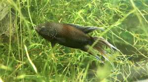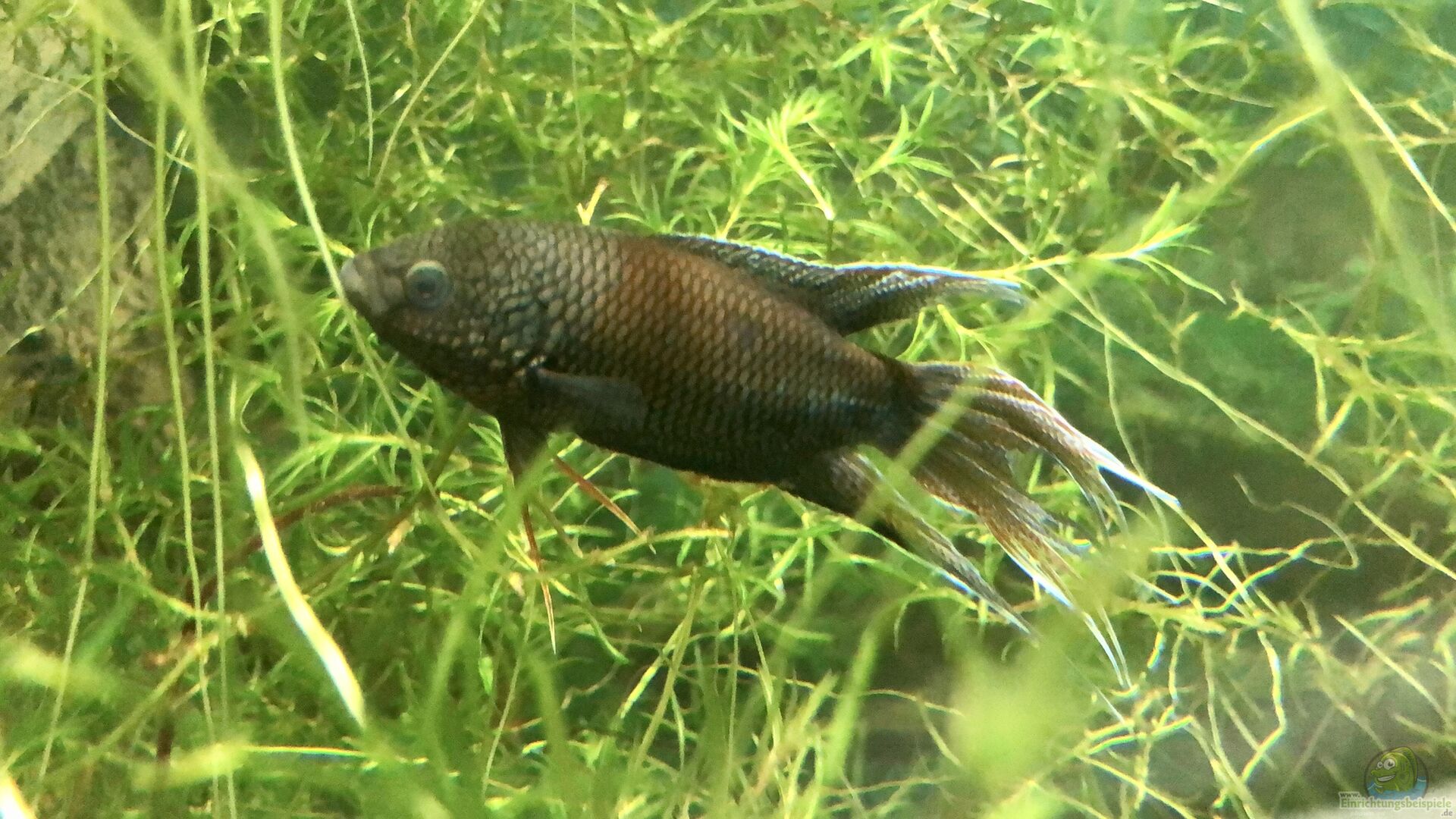 Im Winter 2020/2021 kam ein Kollege zu uns in den Keller ???Aquarium am Münzerturm??? mit acht wunderschönen, aber dunklen Makropoden. Diese Tiere habe ich bis dato noch nie in natura gesehen und freute mich sehr. Es waren Rotrücken-Makropoden - Macropodus erythropterus. Wir gaben sie anfangs in ein 67x67cm Aquarium mit 45cm Höhe in unserem Kühlen Raum bei den Goodeiden (Mexikanische Hochlandkärpflinge). Das Becken hatte 15-16 Grad und die Tiere hatten somit noch eine Winterruhe.