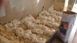 Die Platten wurden nun mit Bauschaum besprüht um Konturen und einen gewissen 3D Effekt zu bekommen . Der Schaum mu?? nun erst mal " aufgehen " danach wird alles mit zuvor eingefärbten Fliesenkleber bestrichen . Sollten einem nicht genug Konturen oder der 3D Effekt noch nicht genügen , so kann man sofern es noch nicht mit Epoxydharz bestrichen ist immer noch Bauschaum aufsprühen , der natürlich noch bestrichen werden mu?? ( letztes Bild ) . In den tiefer gelegenen Stellen kann man dunklere Farben streichen so das Schatten entstehen und mehr Tiefe erzeugt wird , jedenfalls optisch. Als Farben eignen sich je nach dem was man nachbilden will eher gedeckte Farben in Matt, wie Ocker , Marone , Rotbraun , Dunkelbraun , usw.