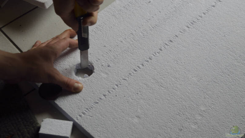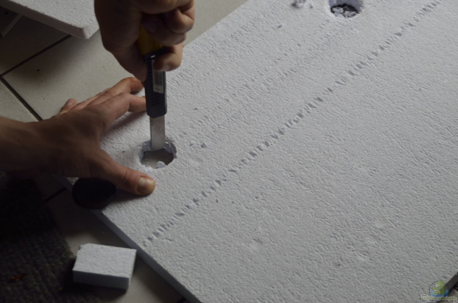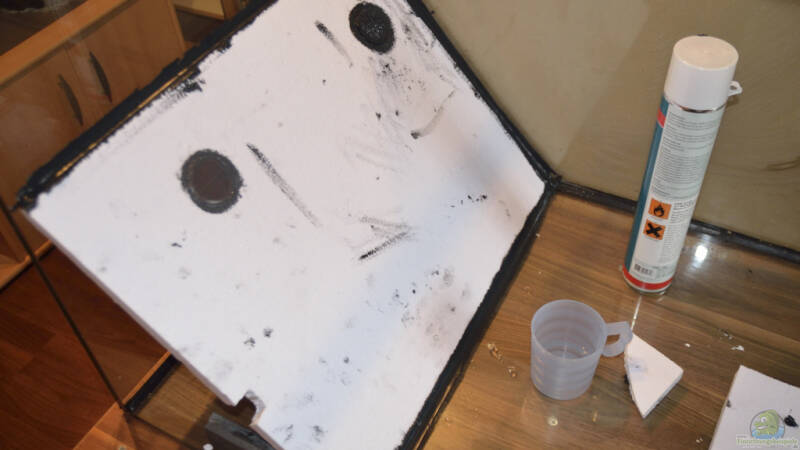 Zuerst wurden die Styrodurplatten in den beiden Ecken verklebt und zwar so das ein Dreieck frei blieb das werden die Filterkammern. In diese Platten wurden zwei Ansauggitter eingearbeitet , diese werde ich aber durch ??berlaufkämme erstzen so das dass Wasser von oben in den Filter einlaufen kann. Beide Ecken werden als Filter verwendet .Dann wurde die Rückwand verklebt und zum Schlu?? die beiden Seiten .