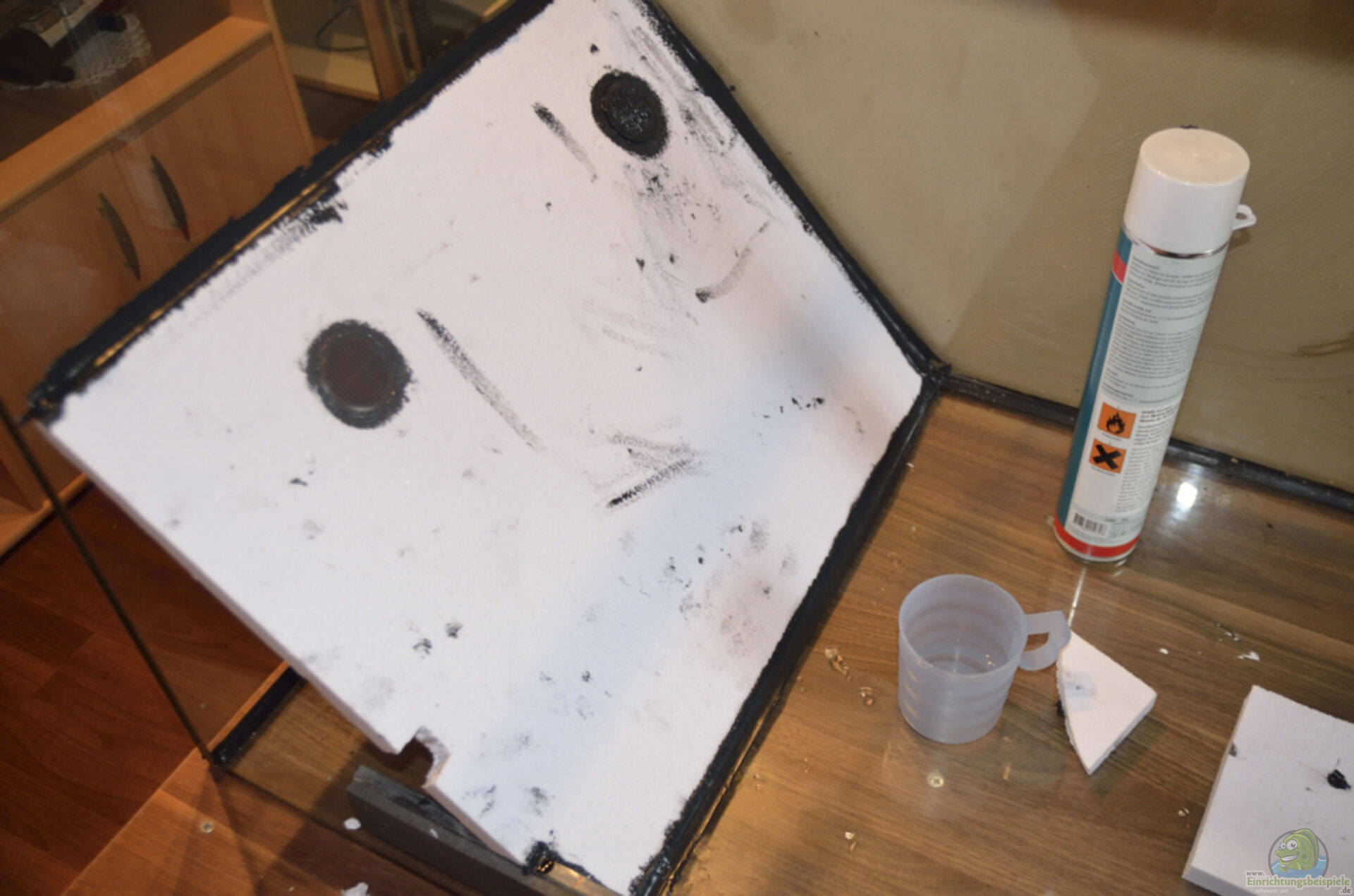 Zuerst war vorgesehen noch dünne Wurzeln in die Rückwand einzuarbeiten aber diese Idee haben wir dann doch verworfen da wir uns nicht sicher waren ob diese wirklich haltbar sind oder mit der Zeit anfangen zu faulen im ??bergang von Wasser zur Wand .