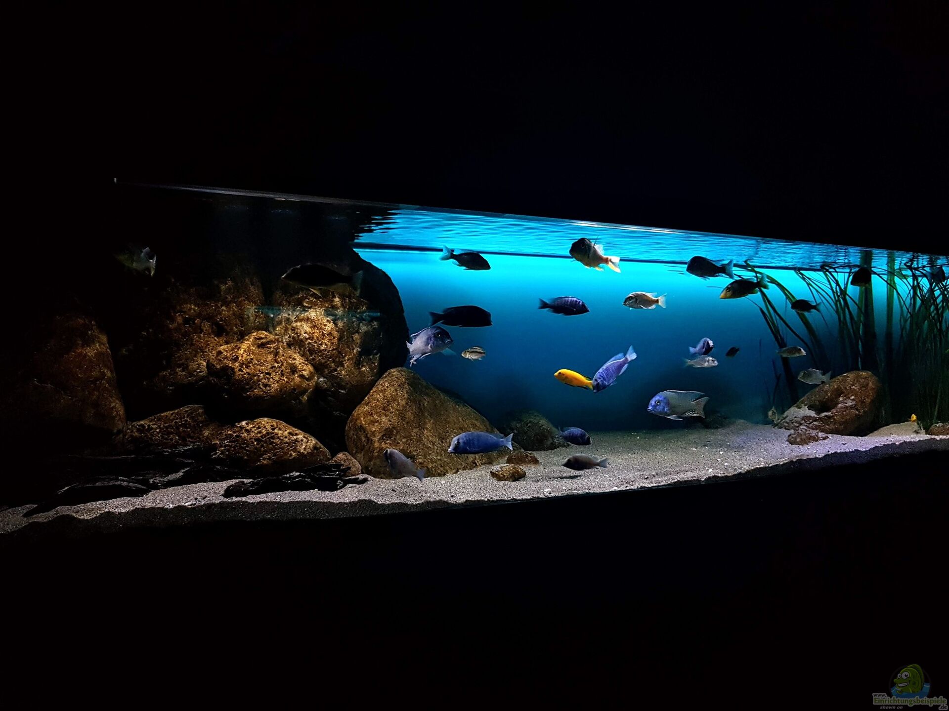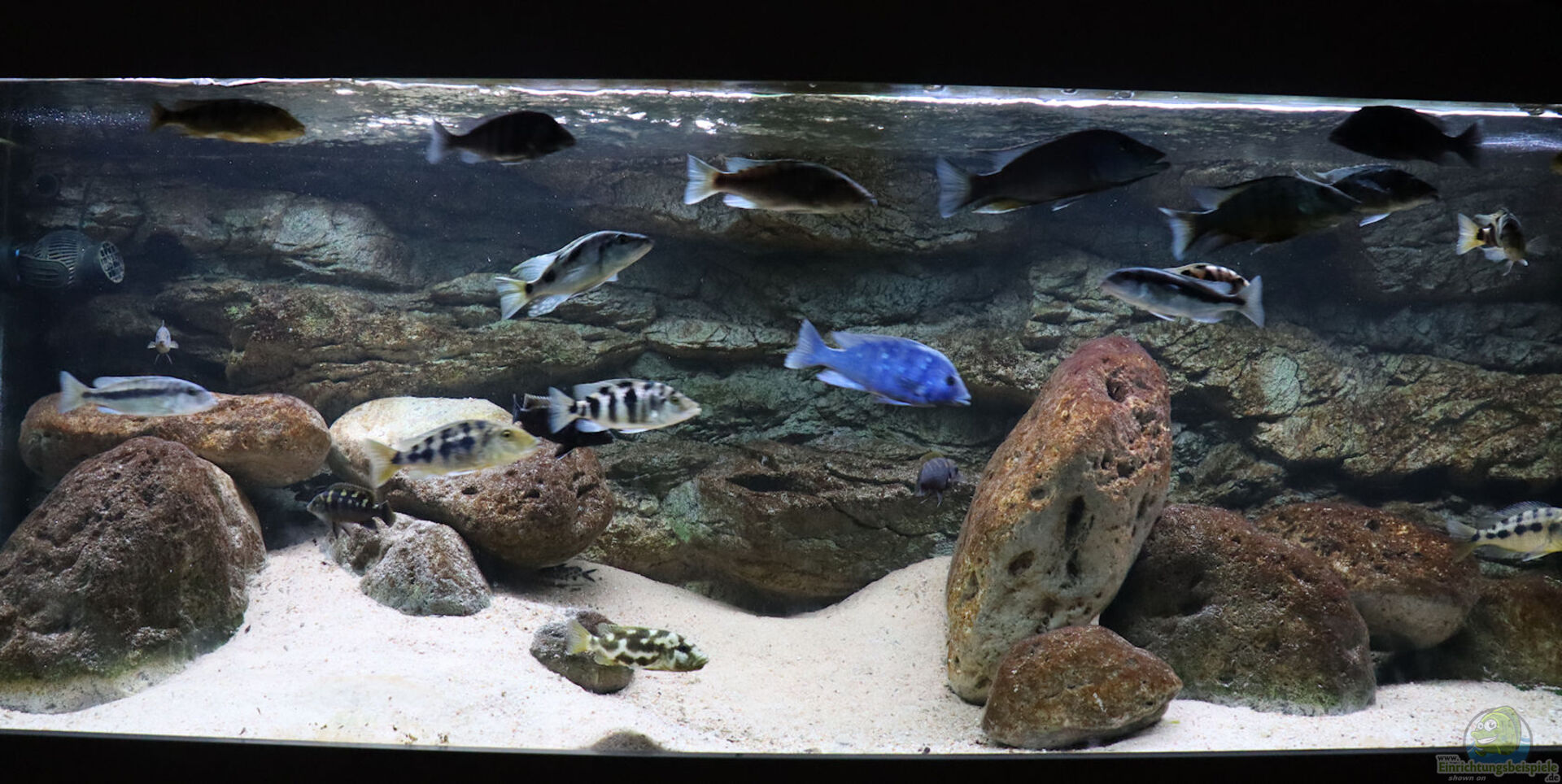 Die Beleuchtung sollte hell genug sein, um die Farben der Aquarienfische aus dem Malawisee zur Geltung zu bringen, aber nicht übertrieben intensiv. Zu starkes Licht kann scheue Arten stressen. Eine gleichmäßige Ausleuchtung ohne starke Schattenbildung ist ideal.