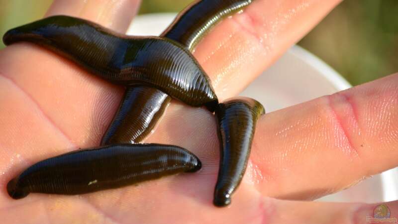 Bekämpfung: Blutegel lassen sich am besten durch manuelles Absammeln bekämpfen. In stark befallenen Teichen können bestimmte Fischarten wie Rotfedern oder Gründlinge helfen, die Blutegel zu reduzieren. Auch die regelmäßige Reinigung des Teichbodens entfernt Eigelege von Blutegeln.