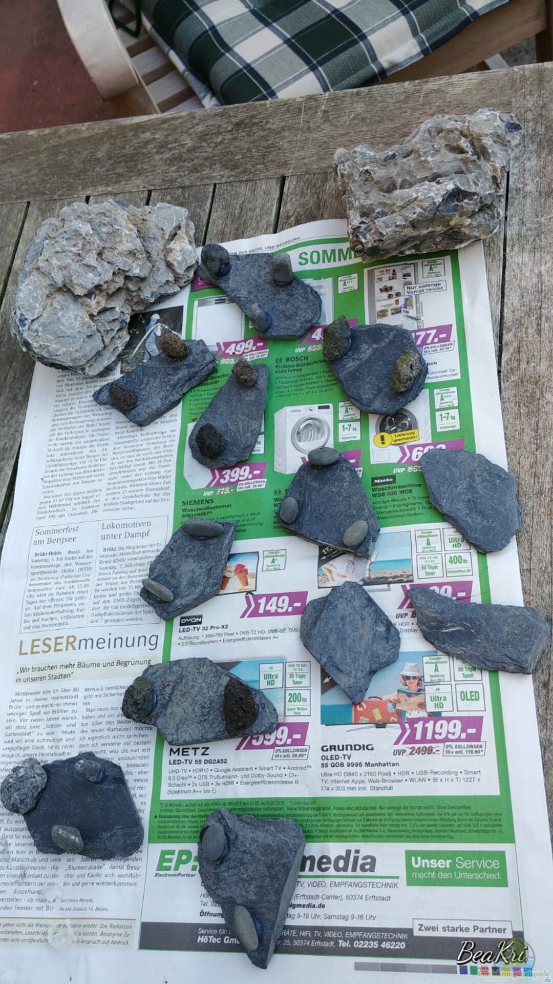 Ein weiteres Kriterium ist die Größe und Form der Schieferplatten. Große, flache Platten lassen sich einfacher stapeln und verleihen dem Aquascape ein modernes, lineares Erscheinungsbild. Unregelmäßige Bruchstücke hingegen eignen sich hervorragend für naturnahe Landschaften, da sie die ungleichmäßige Topographie von Fluss- oder Berglandschaften nachahmen.