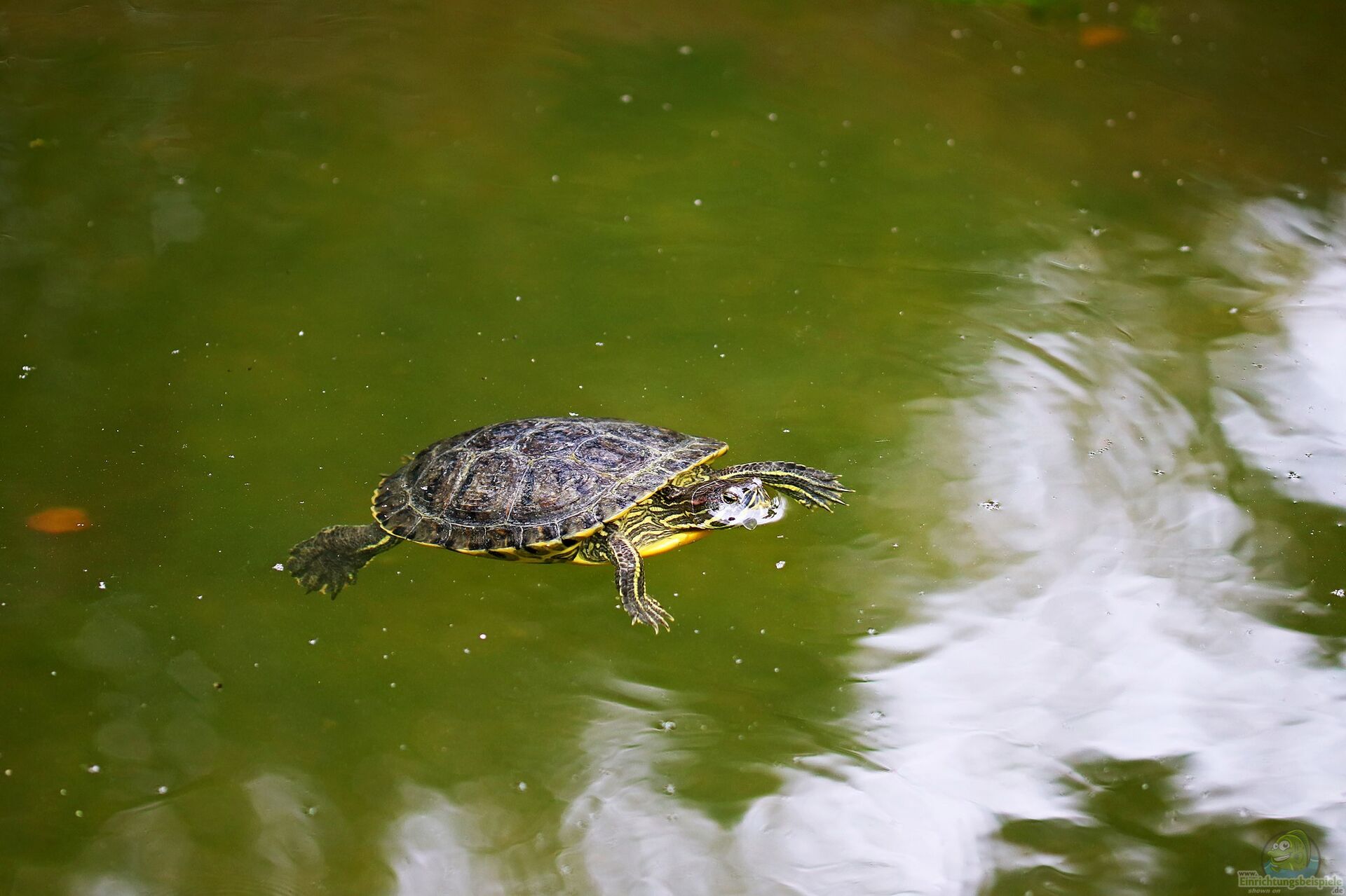 - Größe des Teichs: Stellen Sie sicher, dass der Teich groß genug ist, um den Schildkröten ausreichend Platz zum Schwimmen und Sonnenbaden zu bieten. Ein guter Richtwert ist, dass der Teich mindestens 2,5 bis 3 mal so lang sein sollte wie die Länge der größten Schildkröte.