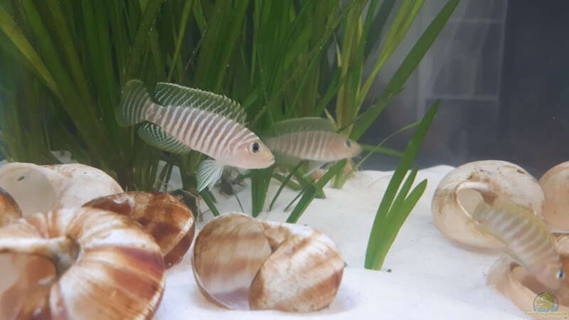 Aquariumgröße: Ein Aquarium ab 100 Litern ist für ein Paar oder eine kleine Gruppe von Lamprologus ocellatus empfehlenswert. Auch hier sollten genügend Schneckenhäuser bereitgestellt werden, damit die Tiere ihre Reviere abstecken können.