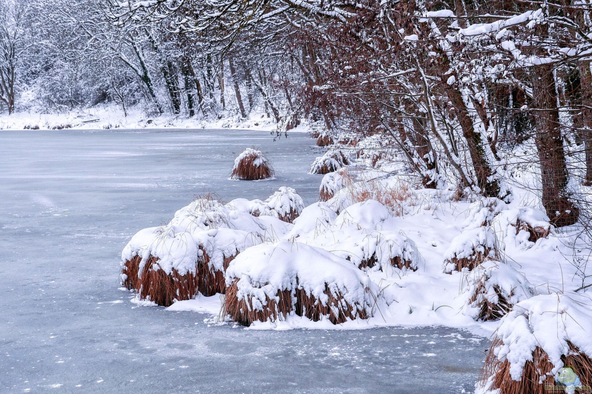 Eine Schneeschicht auf dem Eis blockiert nahezu vollständig den Lichteinfall. Während kurze Schneeperioden meist unproblematisch sind, verändert sich die Situation bei dauerhaftem Schneeliegen deutlich. Wasserpflanzen stellen ihre ohnehin geringe Aktivität weiter ein, und der Teich wird zu einem nahezu lichtlosen System.