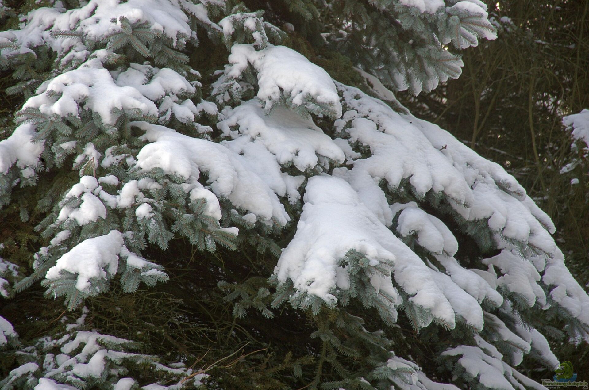 Immergrüne Pflanzen tragen auch im Winter Blätter oder Nadeln. Diese vergrößern die Oberfläche, auf der sich Schnee ablagern kann. Laubabwerfende Gehölze sind hier meist im Vorteil, da Schnee leichter durch die kahlen Äste fällt.