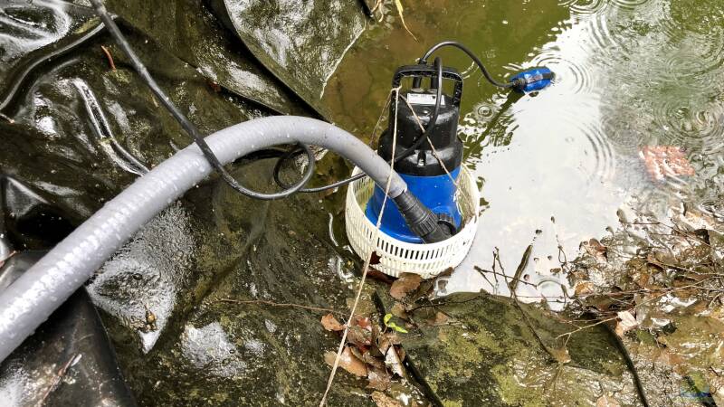 Wir haben eine leistungsstarke Pumpe, die mit einem Schutz-Korb versehen ist, damit keine Molche und grö??eren Tiere in die Pumpe kommen und durch einen dicken Schlauch wird dann der Gro??teil des Wassers abgelassen. Wir haben gleich im Garten einen Kanal, in den wir das Wasser lassen können und am Ende des Schlauches haben wir noch ein Netz angebracht, damit auch keine grö??eren Tiere, wie Libellenlarven oder Rückenschwimmer in den Kanal kommen.