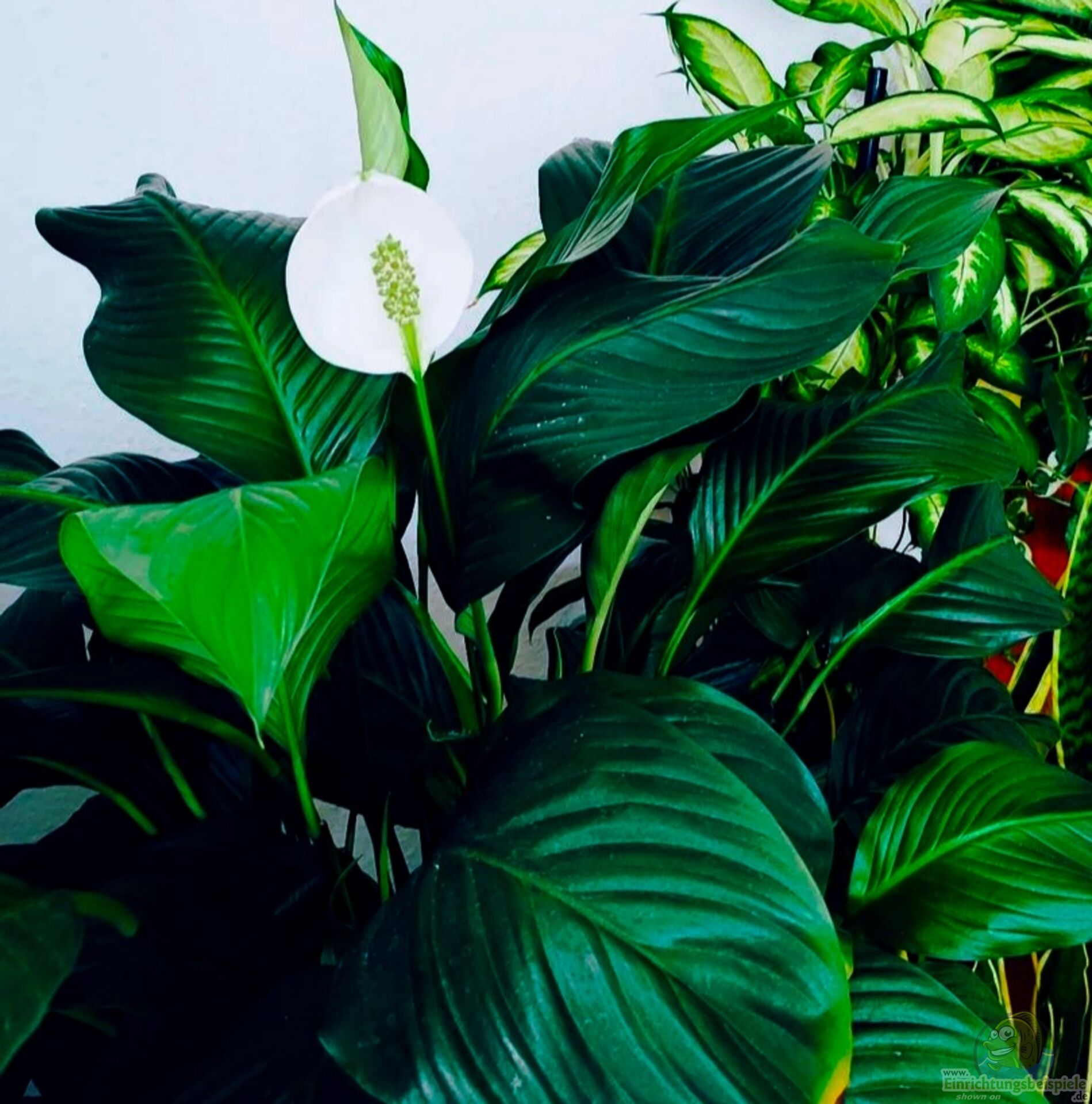 Spathiphyllum wallisii / Friedenslilie, Blattfahne, Scheidenblatt
