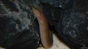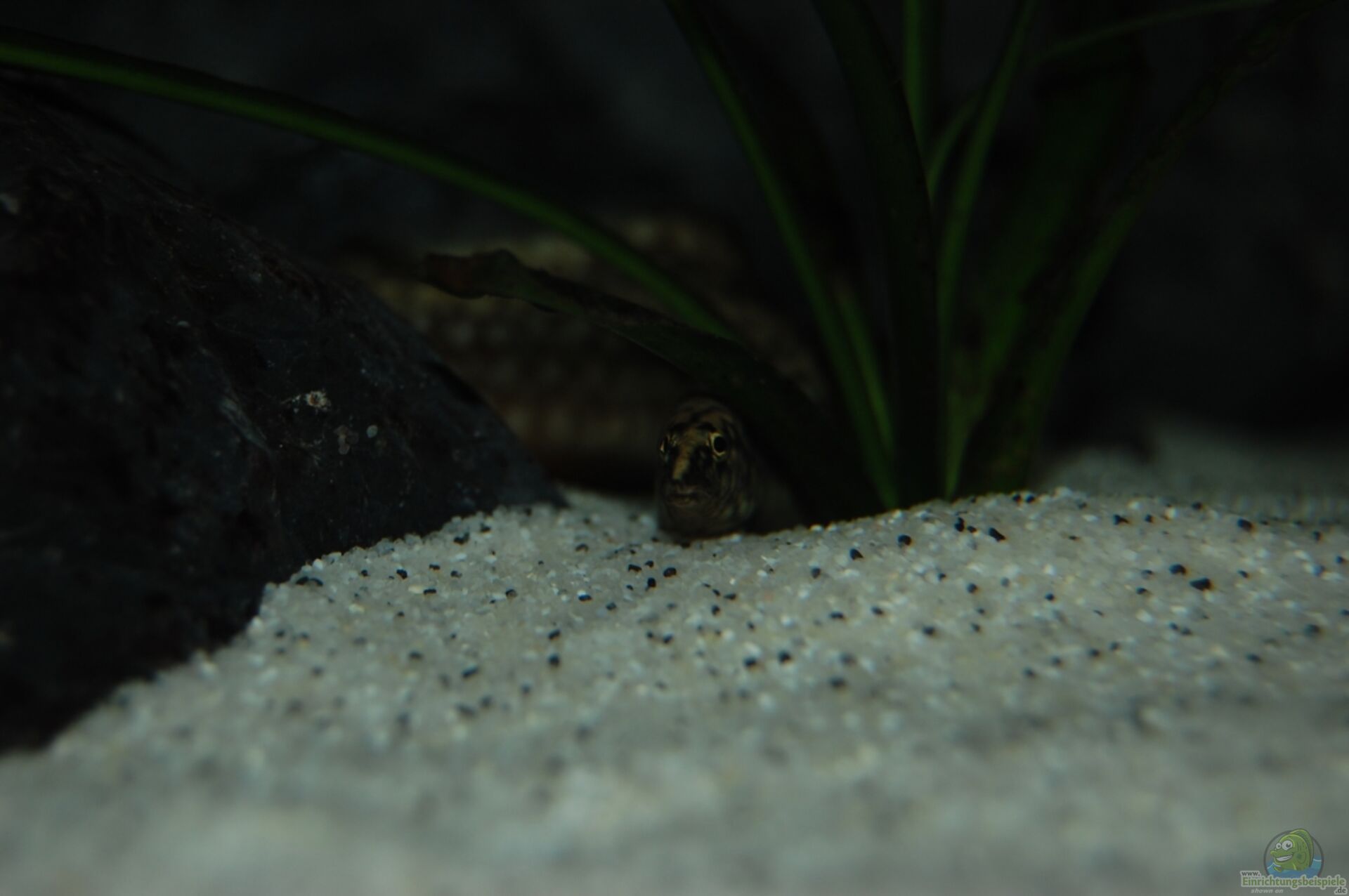 Wie sie dann so aus ihrem Versteck heraus gucken, erinnert das stark an eine Muräne wie ich finde. Meine Kiesel, die ich erst vor ein paar Tagen ins Becken getan habe, erweisen sich als super Versteck. Ich hätte gar nicht gedacht dass die Aale darunter/dazwischen passen, funktioniert aber bestens und wurde direkt angenommen.