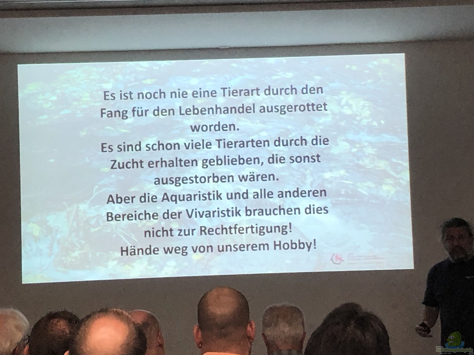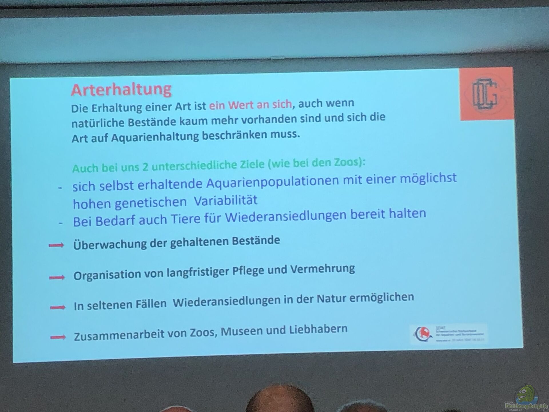 Nach dem gemütlichen Mittagessen und kurzen Besuch im Naturmuseum hielten Röbi Guggenbühl und Frank Schäfer Vorträge zur ???Arterhaltung in der Aquaristik???. Hier spitzte ich ganz besonders meine Ohren, war dies doch das Thema, dem wir unseren Keller widmen. Frank Schäfer ging dabei auch der Frage auf den Grund, ob Wildfänge die Arten gefährden.