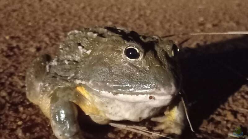 Auch als Afrikanischer Bullenfrosch bekannt, ist dieser Frosch in den Savannen und Halbwüsten Afrikas beheimatet und für seine beeindruckende Größe und sein kräftiges Auftreten bekannt.