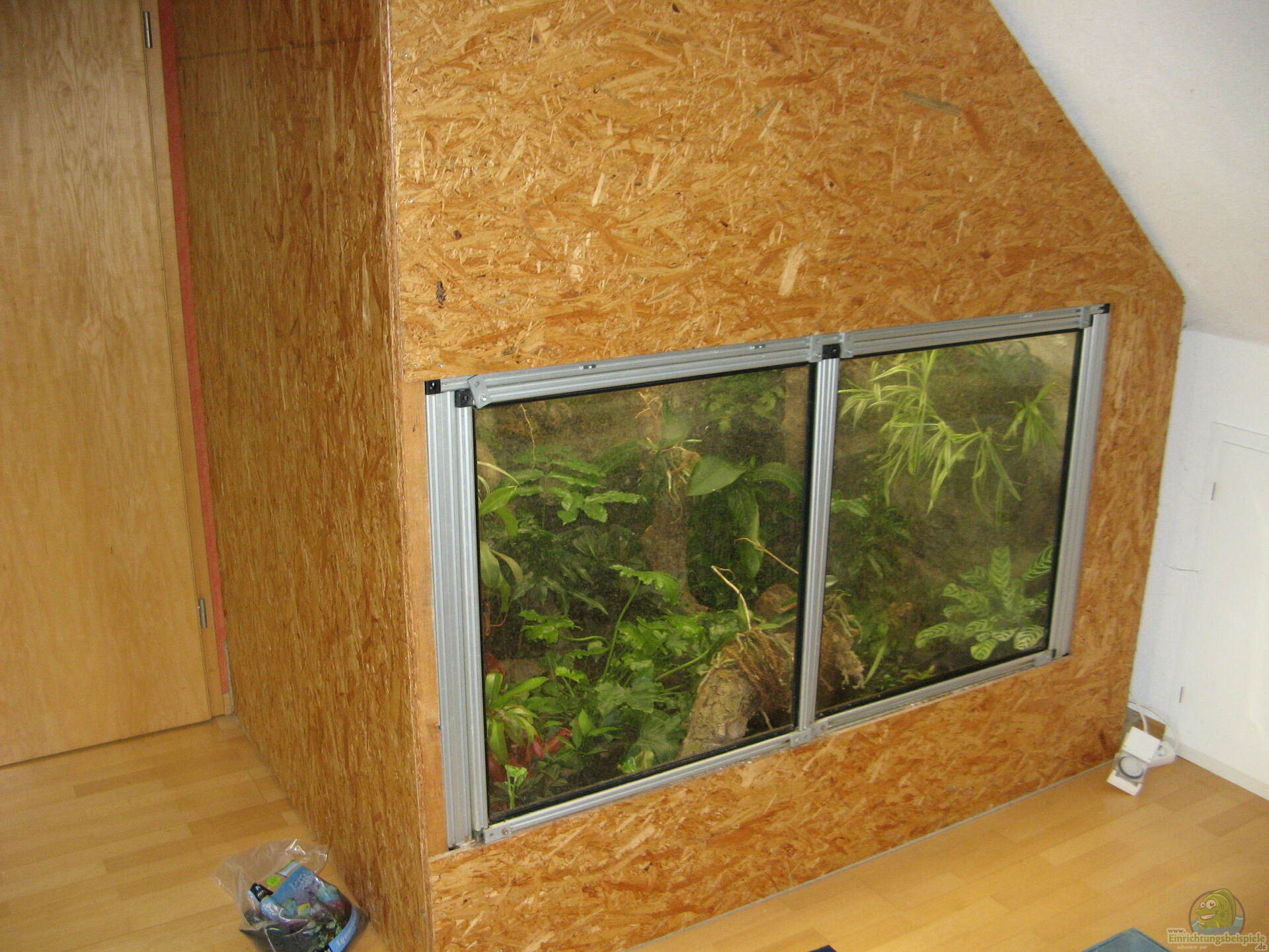- Holz: Holzterrarien sind eine gute Option für Reptilien, die eine höhere Luftfeuchtigkeit benötigen, da sie Feuchtigkeit besser halten als Glas oder Plexiglas. Es ist jedoch wichtig, ein Hartholz wie Eiche oder Buche zu verwenden, da Weichholz schnell verrotten kann.