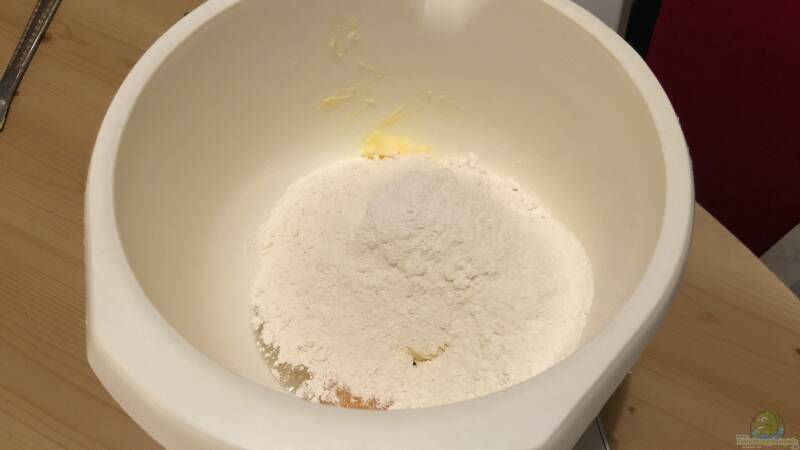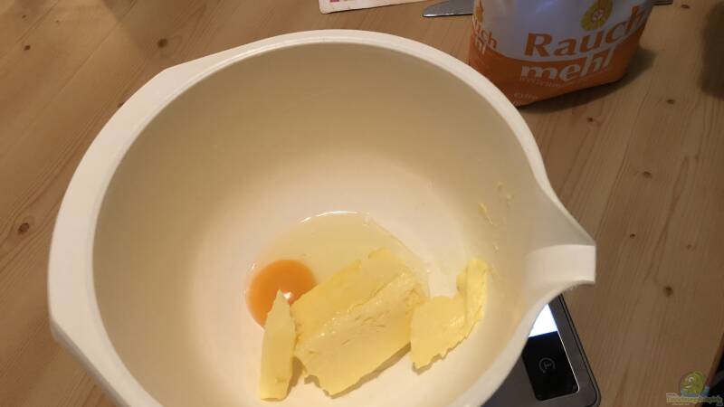 Man sieht, es ist nicht viel, was dazu gebraucht wird. Wir haben übrigens Butter genommen, da Margarine nicht so gesund sein soll und Butter vom Darm schneller abgebaut werden kann. Backpulver haben wir ebenso weggelassen, da dies für den Darm auch ungesund ist???