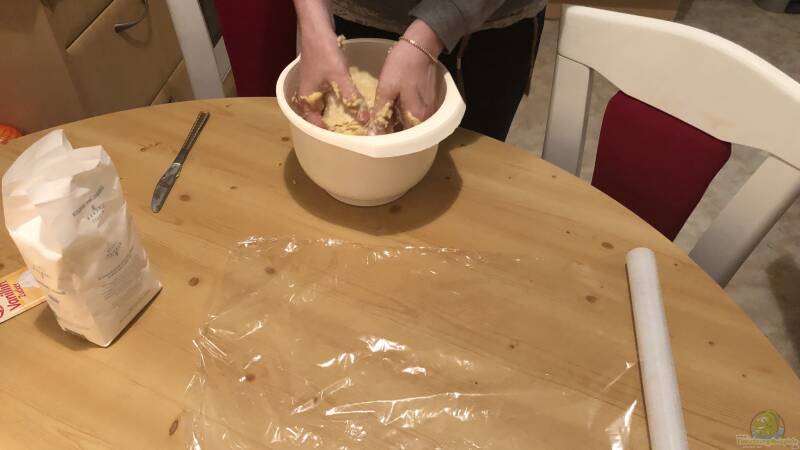 Wir haben den Teig sogar über Nacht im Kühlschrank gelassen, da wir erst am Abend zum Teig machen gekommen sind und dann waren wir zu müde.