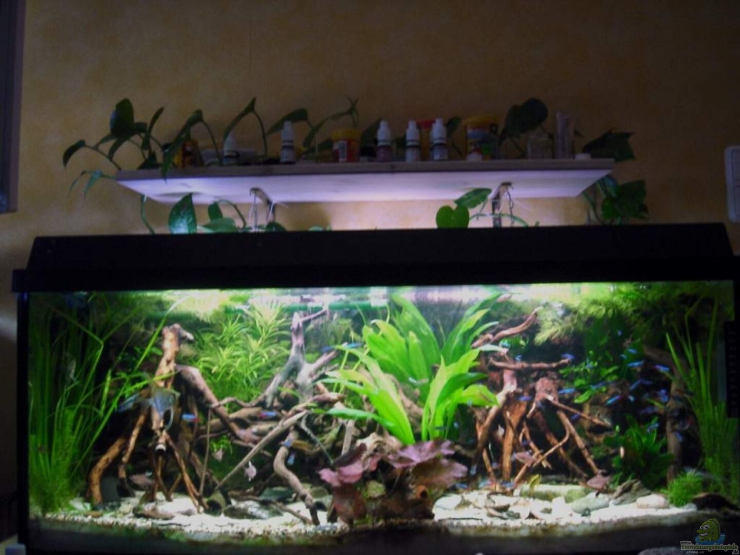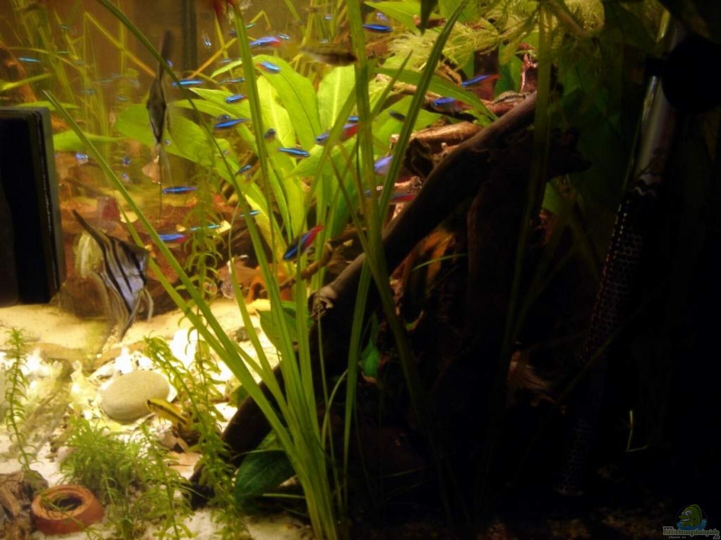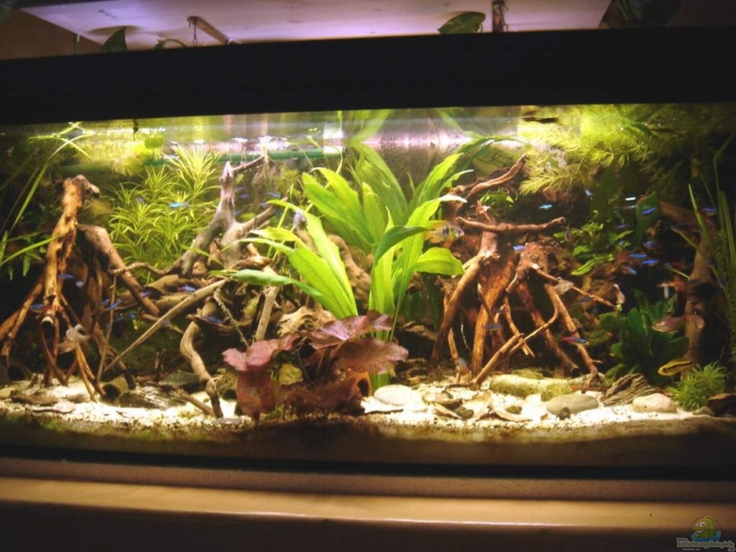 Zu viele Fische, hm. Denke ihr meint die Neons. Hatte erst ca. 30stk, diese gehen aber absolut unter. 60stk liest sich viel als Zahl, aber im Becken verteilen sie sich doch sehr, grade durch die vielen Wurzeln wo immer einige versteckt sind. Ich persönlich finde, da? man beim Betrachten des Beckens die Zahl nicht auf 60stk schätzen würde. Wollte eben ein Becken mit einem Riesen Schwarm Neons und einigen ZBB dabei. Die Schmucksalmler habe ich dann noch bei um noch einen Kontrast zu den Neons zu erzeugen.