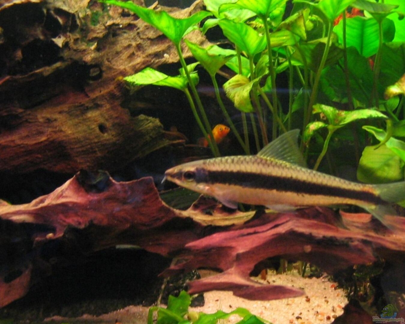 Der Besatz ist allerdings nicht so ideal, insgesamt sind es für nur 100l zu viele verschiedene Arten. Für die Rüsselbarbe ist das Becken zu klein, sollte auch nicht einzeln gehalten werden. Das gleiche gilt für das Dornauge. Auch Metallpanzerwelse und auch Neontetras könnten deutlich mehr Artgenossen vertragen. Der pH könnte noch etwas gesenkt werden, ebenso die KH um ersteres zu erreichen.