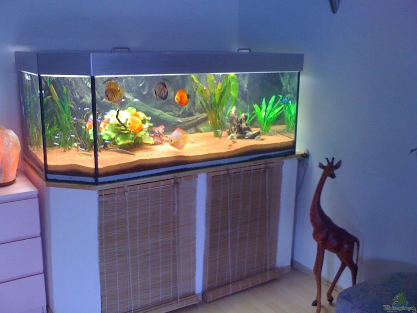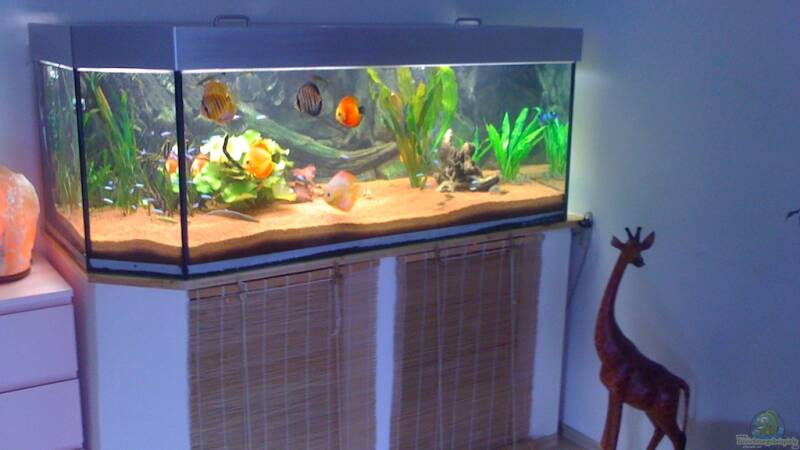 ein schönes Aquarium hast du da, mit wunderschönen Fischen! Die Disken sehen sehr schön aus! Aber diese benötigen, um ihr Wohlbefinden noch zu steigern, Unterstände unter die sie sich bei `Gefahr` zurück ziehen können!