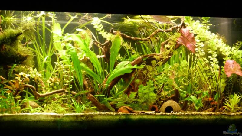 21.06.2011 - Teilwasserwechsel 90 Liter, Bodengrund gereinigt, Filtervlies gereinigt, Düngung 20ml JBL FerroPol, 2 Seemandelbaumblätter hinzugefügt