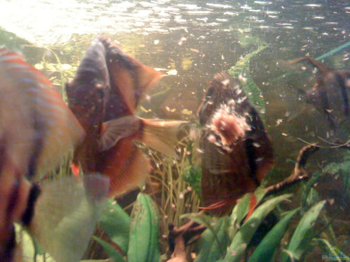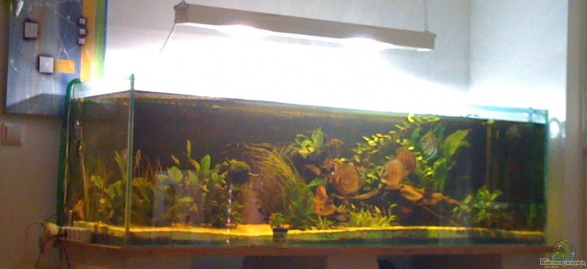 Eine Bewertung seht mir nicht zu, weil ich noch keine Discus gepflegt habe.Wenn du deine Wasseroberfläche mit diesen gelochten Rohr so stark bewegst, treibst du dein ganzes Teuer eingebrachtes CO-2 aus.Lass einfach ein Rohr frei knapp unter der Oberfläche, das reicht völlig aus.Eine Osmose -Anlage Arbeitet für mich zu unwirtschaftlich, vielleicht währe ja Regenwasser über einen Reiser-Filter eine Alternative.Wie schon gesagt wurde an der Filterung mu?t du noch was machen.Der Anfang sieht doch gar nicht so schlecht aus.Aus diesem Becken kann man was machen, und das machst du, da bin ich mir sicher.