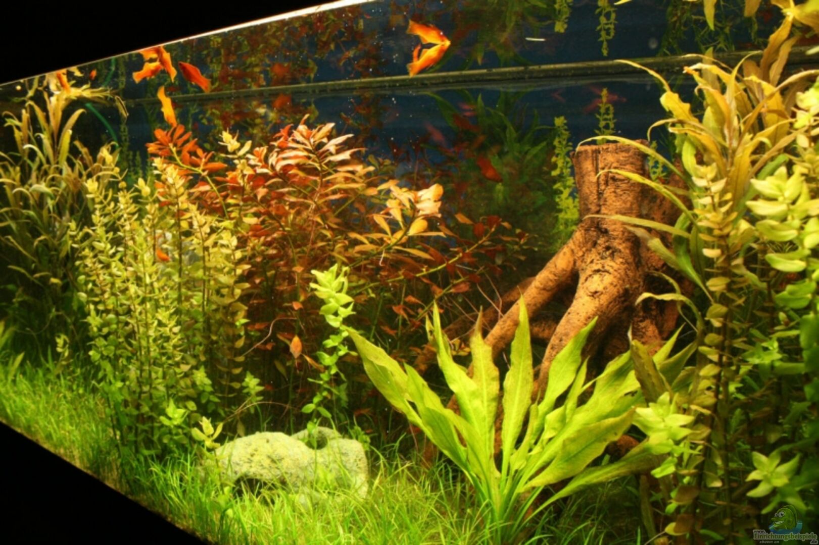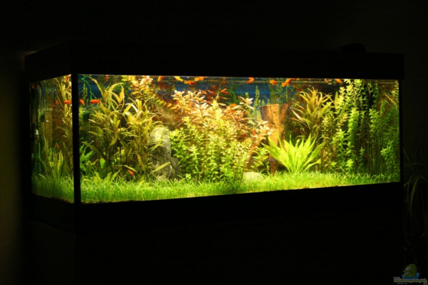 Anfänglich (Januar 2008) wurde mit 4 x 54 Watt T5 Röhren beleuchtet. Nach Algenplage wurde auf 2 Röhren reduziert, was sich langfristig als gute Entscheidung herausgestellt hat. Auch bodendeckende Graspflanzen (Neuseelandgras und E. tenellus) wachsen mit nur zwei Röhren sehr gut.