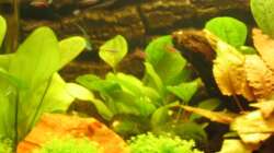 hinten links stehen noch vier Nadelsimsen, die im Moment allerdings hinter den Echinodorus unsichtbar werden. Laut Verkäufer eine Sorte, die hoch wird. Tja, bis jetzt kann ich das noch nicht bestätigen...